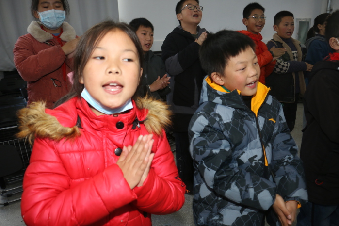 教学之余,曹红星还从全校三到四年级六个班里遴选出四十名同学参加合唱团,每周三、周五下午,利用课外活动时间排练了《唱支山歌给党听》《听我说谢谢你》两首合唱曲目。经过曹红星的互动教学引导,合唱团的很多学生变得表现欲强烈、自信心大增,每次课程结束,学生们都不再怕生,主动围着曹红星交流。“随风潜入夜,润物细无声。”音乐教育就是用这种潜移默化的方式,以它强烈的艺术感染力发挥着独特的育人功能,曹红星老师用爱与专业为同心小学的孩子们种下一颗种子。