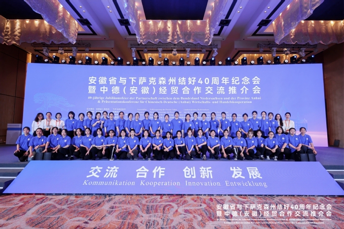 Am Nachmittag des 29. Mai wurden in Hefei die 40-jährige Jubiläumsfeier der Partnerschaft zwischen dem Bundesland Niedersachsen und der Provinz Anhui sowie Präsentationskonferenz für Chinesisch-Deutsche Wirtschafts- und Handelskooperation eröffnet. Die Fakultät für Fremdsprachen der Universität Hefei  organisierte mehr als 50 Lehrende und Studierende im Fach Germanistik, die bei dieser Veranstaltung ehrenamtliche Beratungs- und Übersetzungsdienste leisteten.