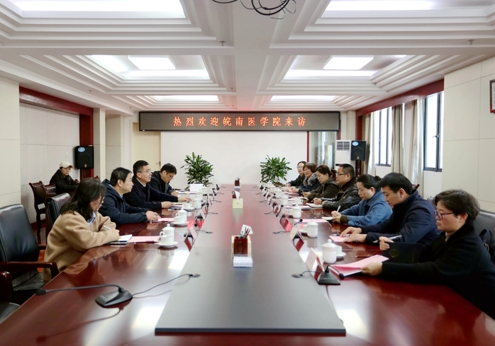 1月7日,皖南医学院党委常委、副院长文育锋带队来校调研交流,我校在行政楼会议室召开座谈会,党委副书记、校长任永出席并主持会议,相关职能部门负责人参加会议。