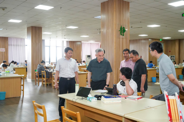 邬平川一行首先来到图书馆自习区域教学楼,与学生们亲切交谈,详细询问学习情况和对环境保障需求,关注考研学生的备考进展与实际困难,为学生鼓劲加油。