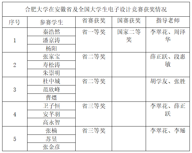 8月5日至7日,全国大学生电子设计竞赛安徽赛区现场测评活动在安徽师范大学举办,我校7支参赛队伍荣获省一等奖1项、省二等奖2项和省三等奖2项。省一等奖团队在8月10日的国赛评测中获国家二等奖。