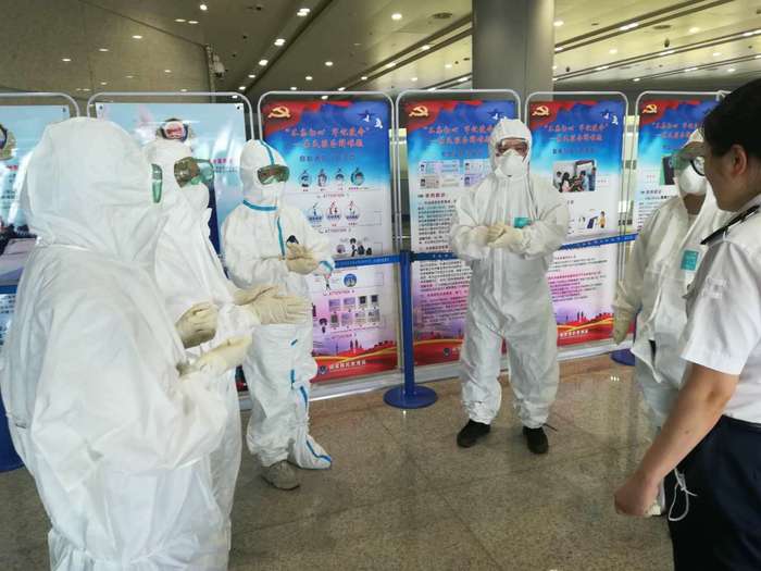 正值高温酷暑天气,老师们身着的厚重防护服总是湿了干,干了又湿。汗水浇不灭合肥学院老师服务地方的热情,疫情期间他们以出色的外语能力和实际行动表达了实践复工复产、助力合肥经济腾飞的决心。据了解,我校朝鲜语专业多次参加合肥市各类大中型对外活动,以扎实的外语能力为合肥市提供高质量的翻译服务。