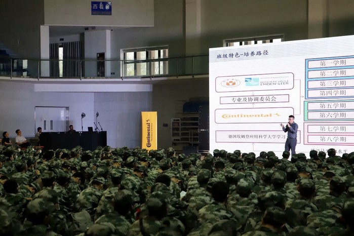 Die Veranstaltung stand allen Studienanfängern des Jahrgangs 2020 in Natur- und Ingenieurwissenschaften offen. Während der militärischen Ausbildung sahen sich die Erstsemester das Video an, in dem die Unternehmenskultur des Continental-Konzerns und das Projekt der Conti-Klasse sorgfältig vorgestellt wurden. Danach betrat Zhang Guangzhou, Projektleiter für die Conti-Klasse, die Bühne, um den spezifischen Inhalt des Projekts vorzustellen.