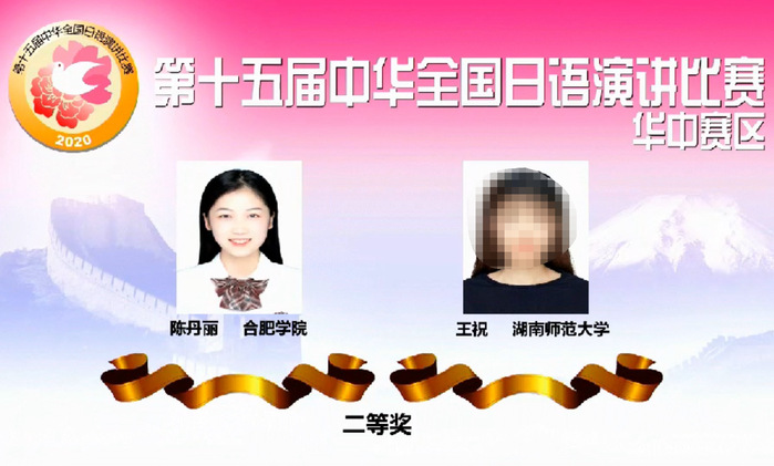 日语专业陈丹丽同学荣获中华全国日语演讲大赛华中赛区二等奖