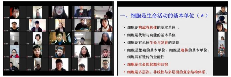 作者简介:张敏,生物食品与环境学院副教授。主持省级科研项目2项,省级教研项目2项,生命科学竞赛省级二等奖、国家级优胜奖。在线教学增加了课堂管理的难度,往往无法通过学生的听课状态来进行课堂管理和调整教学进程,通过师生全部视频在线是一个不错的选择。张敏老师通过四次线上授课,同学们已适应网上授课的方式和节奏,全班同学状态良好,学习积极性高,没有迟到早退现象,个别同学网络不好,掉线后能及时上线。