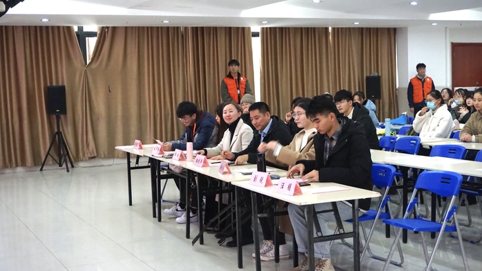学生助理陆元婷对志愿者们进行校情专题培训。汪朋向大家介绍了志愿者相关纪律要求和奖惩制度。
