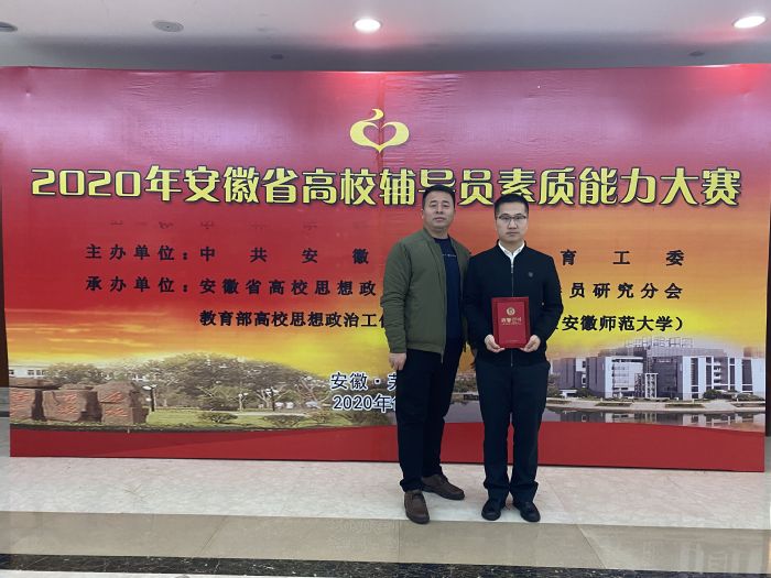 11月24日至27日,2020年安徽省高校辅导员素质能力大赛在安徽师范大学举行。本次大赛由省委教育工委主办,省高校思想政治教育研究会辅导员研究分会、教育部高校思想政治工作队伍培训研修中心(安徽师范大学)承办。省内各高校进行初赛选拔后,共有87所高校推荐的87名优秀辅导员参加本次省级决赛。我校选派先进制造工程学院辅导员钟伦锁参赛,获大赛二等奖。