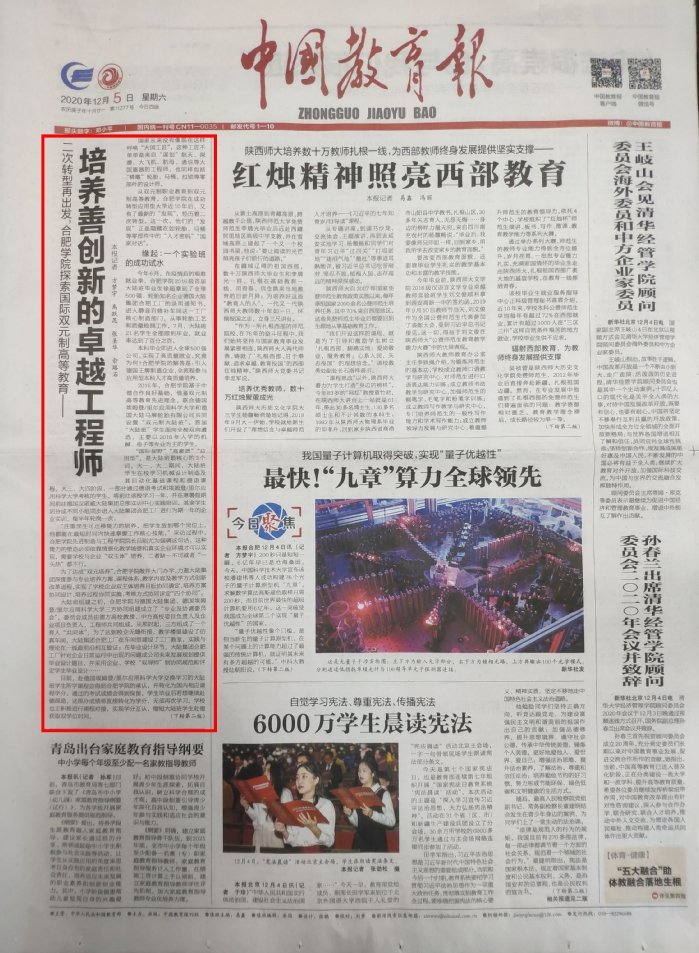 Schlagzeilenbericht „China Education News“ über die duale Hochschulbildung der Universität Hefei
