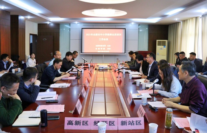 由合肥市教育局主办、我校承办的2021年合肥市中小学教师全员培训工作会议于4月29日下午在我校黄山路校区召开。合肥市教育局及12个县(市)区教育主管部门师训负责人,中国教师研修网、中国教师教育网、北京奥鹏教育、安徽开放大学、合肥幼儿师范高等专科学校、合肥学院等培训单位的相关人员参加本次会议。会议由合肥市教育局教师事务管理中心张崇璟老师主持。