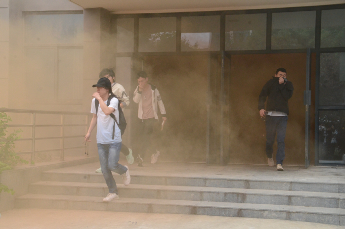 演练前,易班中心等网络媒体面向全校推送防灾减灾知识,各学院辅导员向学生普及了防震及消防疏散应知应会知识。演练指挥组、通讯联络组、疏散引导组、应急保障组、宣传报道组等通力协作,确保场地及各项物资准备到位。过程中,各组合作确保了演练安全有序进行。在现场疏散引导员的提醒指引下,学生们在防震演练阶段能找到安全可靠地点进行躲避并做好身体重要部位的安全防护,在消防疏散演练阶段能护住口鼻并保持低姿快速通过浓烟区。