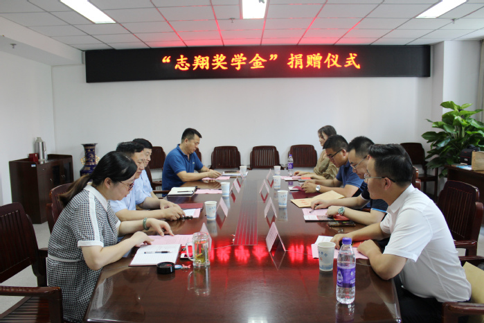 7月14日下午,“志翔奖学金”捐赠仪式在我校行政楼举行。安徽天人志翔教育科技有限公司校长李超一行四人,校党委委员、学生处处长、安徽中德教育合作基金会事业发展部副部长朱涛,校计划财务处处长、基金会秘书长何世昆,学生处副处长许刚参加仪式。仪式由基金会管理办公室主任刘金平主持。