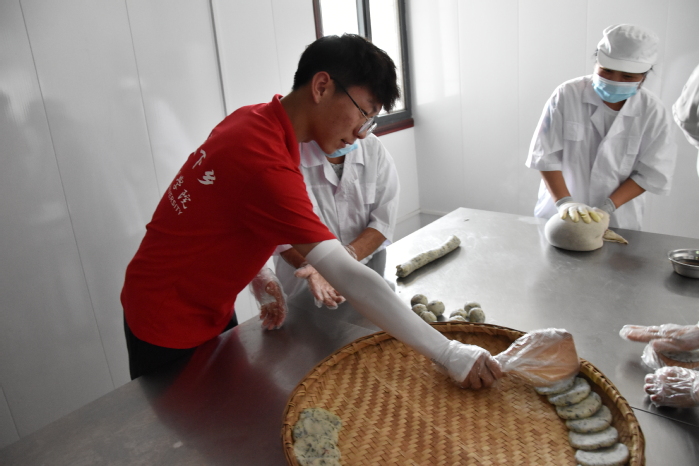 在前往柿树岗乡之前,调研团队通过网上查阅资料,了解到当地拥有多项市级和县级非遗项目,政府和居民对非遗保护与传承高度重视,政府通过政策进行扶持,将非遗打造成当地文化名片;当地居民在继承非遗文化同时,积极寻找合适的继承者传授技艺,确保非遗文化薪火相传。在探寻非遗过程中,调研团队有幸参与到非遗食品蒿子粑粑的制作过程中,品尝美味的同时,也亲身感受蕴藏在其中的文化基因。调研团队还近距离观看了当地非遗项目“门歌”和“碟子舞”,了解其创作理念及传承情况,深入感受当地乡土人情。