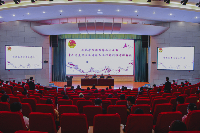 11月12日,合肥学院团校第二十七期青年马克思主义者培养工程开班仪式在图书馆报告厅举办。校团委书记王玉、马克思主义学院副院长马保卫、校团委副书记李妍妍等参加仪式,仪式由校团委学生会办公室主任丁婧主持。