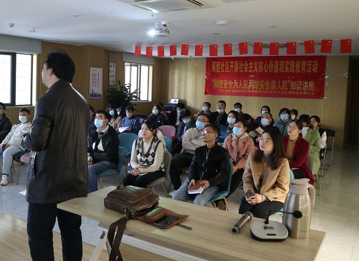 为深入推进“四联四定”促进我校与海恒社区共建共联,近日,合肥学院、海恒社区委员会联合在海恒社区党群服务中心熹微课堂开展了“网络安全为人民,网络安全靠人民”为主题的网络信息安全知识讲座。我校信息办主任夏光峰担任主讲人。