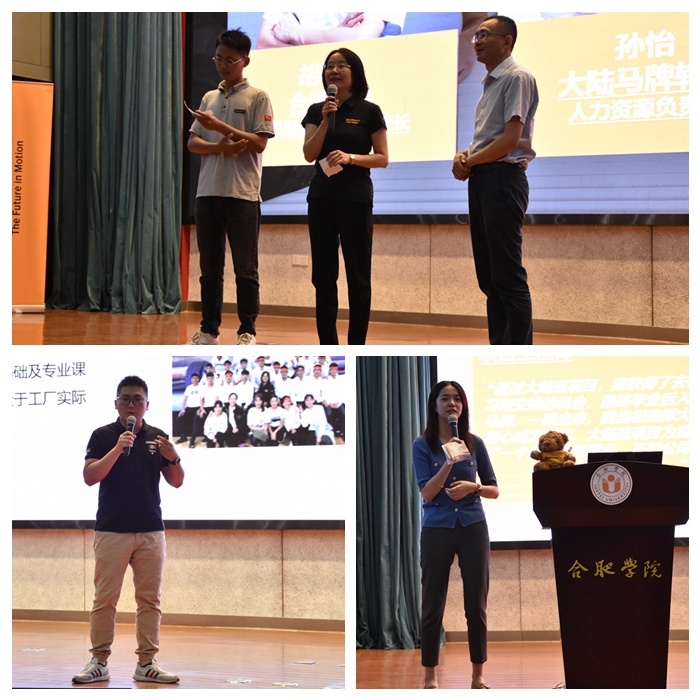 首先,大陆马牌轮胎(中国)有限公司招聘与雇主品牌经理李媛媛介绍了大陆集团及大陆马牌轮胎公司的组织架构、前沿技术、品牌定位,详细讲述了大陆马牌轮胎合肥工厂的概况、发展历程和市场规模。大陆班负责人张光洲从班级的基本概况、班级办学特色、大陆班的发展机遇与挑战、课程设置、学费标准等方面为现场同学详细介绍了项目情况。在答疑互动环节,先进制造工程学院院长胡学友、大陆马牌轮胎(合肥)有限公司人力资源总监孙怡讲解了大陆班选拔流程,优秀毕业生代表畅谈在大陆班的成长故事,鼓励新生积极参与项目报名。
