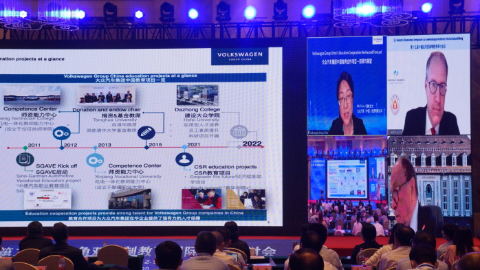 大众汽车集团(中国)学院、企业文化和沟通部高级总监娄屹作题为《大众汽车集团中国的教育合作项目回顾与展望》的报告。她简要介绍了大众汽车集团(中国)的教育合作项目、大众汽车集团(中国)在安徽开展的双元制教育项目,以及与合肥学院共建的“大众学院”的开展情况和办学特色。