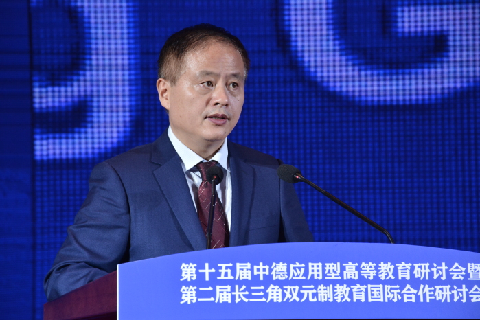 主旨报告由安徽省委教育工委委员、教育厅副厅长张庚家主持。安徽省委教育工委委员、教育厅副厅长储常连作题为《深化“四业”融合 服务安徽创新发展》的报告。他表示,要抢抓新机遇,进一步推进学科专业与创新创业、产业企业、学业就业“四业”融通,围绕产业发展需要不断调整优化学科专业,围绕创新创业建设一流学科专业,围绕学业就业深化教育教学改革,围绕学科专业开展创新创业;要下足真功夫,推进“四业”融通落地见效,坚持科教融合,培养创新创业人才,促进“产教城”共融,培养地方需要的专业人才,坚持向应用型深度转变,培养高质量应用型职业人才,坚持深化交流合作,培养国际视野的现代人才。他号召大家共同推动中德应用型高校高质量发展,为两国、为世界高等教育的发展贡献智慧和力量。