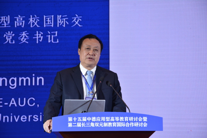 奥斯纳布吕克应用科学大学对华高等教育中心主任亨德里克•拉克勒作题为《论双元制大学教育作为应用型高等教育的至上原则》的报告。他从应用型高等教育与双元制大学教育、德国最新发展概况、基于实例分析介绍相关经验等方面阐释了双元制教育模式,他表示,企业的发展需要大批高质量应用型人才,高校的人才培养要紧密结合企业需求,将理论与实践紧密结合,双元制为应用型大学的特色化发展提供了新的机遇。