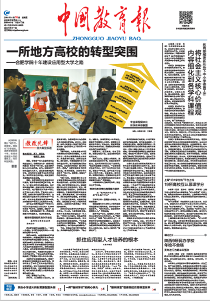 与合肥学院长期开展合作的德国应用科学大学在高级应用型人才培养上独树一帜,从办学理念、培养目标到教学内容、课程设置都拥有一套比较成熟、完善的人才培养体系,毕业生也深受社会的欢迎,被德国科学顾问委员会誉为“现代工业社会的高等学府”。在这种教育思想和理念影响下,学校进一步调整办学思想和定位,围绕专业及人才培养方案、教师、学生、保障资源4大应用型人才培养的要素着手,全面实施教学质量与改革工程。