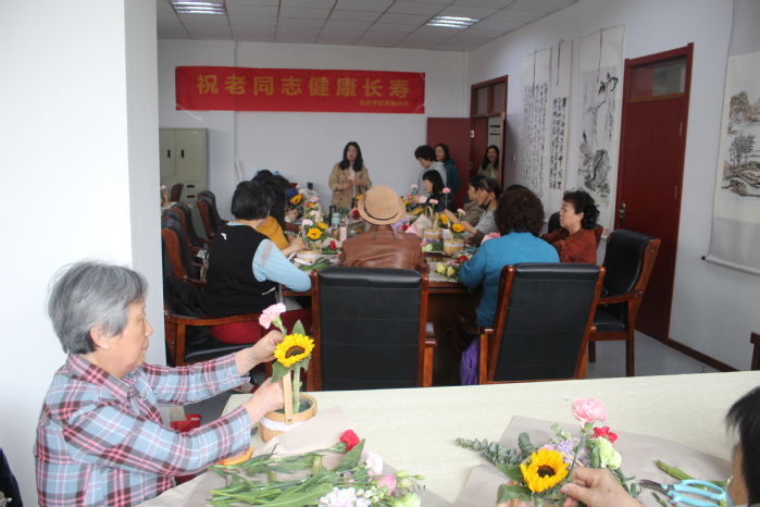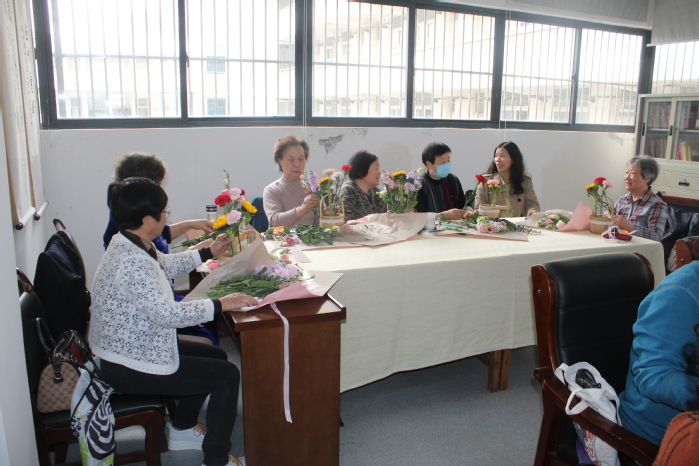 为庆祝第113个“三八”国际妇女节,丰富离退休女教职工的精神文化生活,离退休工作处于3月8日下午在黄山路校区老干部活动室举办了三八妇女节插花活动,共有30余位离退休女职工参与。