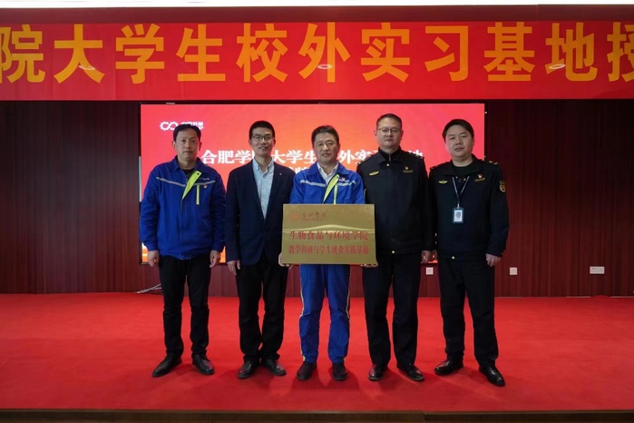 陈俊、王晓依次上台致辞,对肥西县城管局大力支持校企合作共建基地表示感谢。现场,肥西县城管局、中节能公司与我校生物食品与环境学院共同为实习基地揭牌。