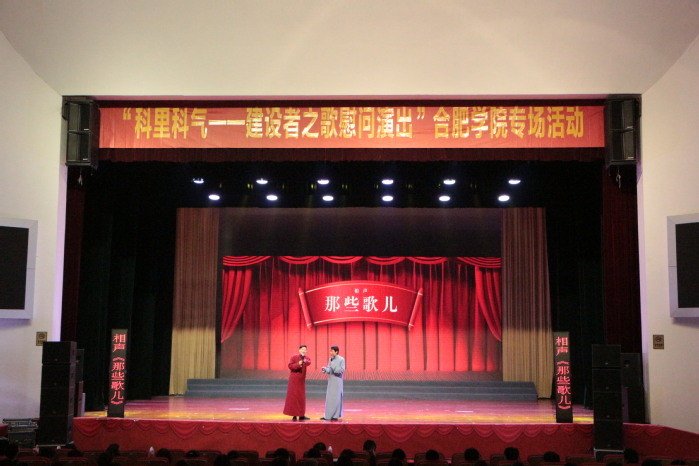3月26日,“科里科气——建设者之歌慰问演出”合肥学院专场活动在一期致用礼堂举办。本次演出由合肥市委宣传部主办、合肥演艺集团承办,是文艺进高校的首场演出。合肥市委宣传部文艺处处长何晓峰、我校团委书记王玉同1000余名合院师生共同欣赏了一场精彩绝伦的视听盛宴。