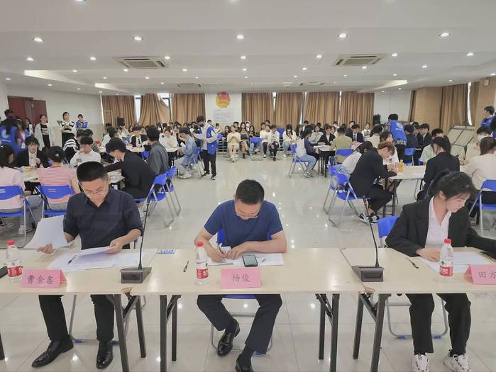 5月19日,我校“支部引航”就业促进主题活动之“模拟求职之路,展现个人之风”面试模拟大赛在大学生活动中心举办。大赛邀请新安人才网招聘中心总经理杨俊、政企部总监曹金鑫及毕业生代表田方方担任评委,我校2020级、2021级和2022级各团支部共40名成员参加比赛,50名团支部代表到场观赛。