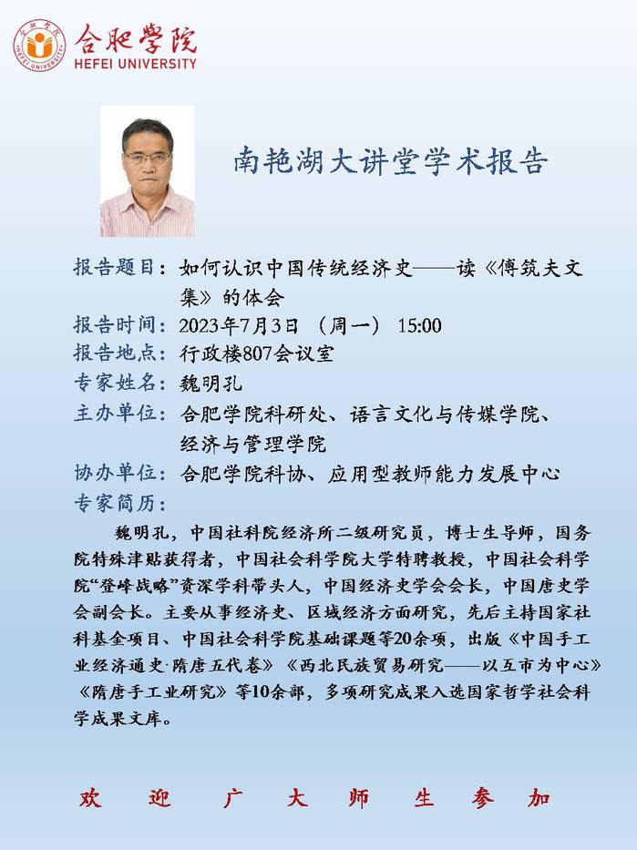 【讲座预告】如何认识中国传统经济史——读《傅筑夫文集》的体会