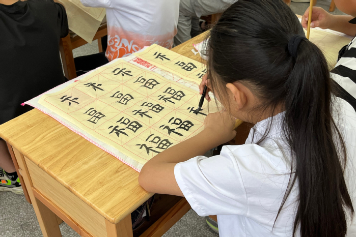 支教活动中,课程设计国学组向当地学生介绍古典音乐、古建筑、非物质文化遗产等知识,带领学生做八段锦、太极早操,让他们亲身感受传统文化的魅力。书写组为学生们讲授毛笔的握笔姿势、规范字的书写等,充分调动他们学习书法的热情。志愿者们通过实地走访,讲解普通话学习方法,大力推广普通话,有效提升居民“讲好普通话”的意识。