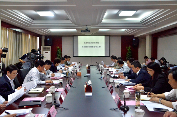 Am 14.04.2016 besuchte Wu Cunrong die Universität Hefei. Das Mitglied des ständigen Ausschusses der Provinz Anhui und Parteisekretär der Stadt Hefei kam zur Untersuchung der Modelleinrichtung der Bildungskooperation zwischen China und Deutschland. Zunächst begrüßte er die Studierenden und Lehrkräfte der Universität und hielt dann eine Besprechung ab. Dabei erwähnte er, dass sich die Universität gut entwickle und damit vom chinesischen Ministerpräsidenten Li Keqiang hoch geschätzt werde. Die Universität Hefei sei nicht nur eine Hochschule, der das Bildungsministerium seine Aufmerksamkeit schenke und die stark vom Bildungsministerium gefördert werde, sondern auch ein stadtbildprägendes Wahrzeichen. Darüber hinaus betonte er, dass sich die Universität in einer entscheidenden Lage befinde. Darum sei es erforderlich, das vom Staatsrat der Volksrepublik China und der Regierung der Provinz Anhui verfolgte Hochschulkonzept durchzusetzen, internationale Perspektiven zu entwickeln, die Denkweise zu verbessern, an Reform und Innovation festzuhalten, Entwicklungschancen zu ergreifen und somit die Entwicklung der Universität Hefei weiterhin aktiv voranzutreiben. Um einen neuen und größeren Beitrag zur lokalen wirtschaftlichen und gesellschaftlichen Entwicklung zu leisten, müsse die Modelleinrichtung der Bildungskooperation zwischen China und Deutschlandund eine lokale anwendungsorientierte Hochschule mit hohem Niveau dringend weiter aufgebaut werden. Neben Wu Cunrong nahmen Ling Yun, stellvertretende Parteisekretärin der Stadt Hefei, sowie Wei Yi, Mitglied des ständigen Ausschusses der Stadt Hefei und Generalsekretär der Stadt Hefei, an der Besprechung teil. Ling hielt ebenfalls eine Rede.