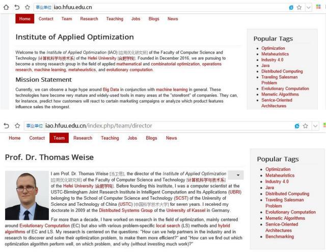 Im Rahmen des Aufbaus der Modelleinrichtung der Bildungskooperation zwischen China und Deutschland, wird der sogenannte „1251“-Plan schrittweise erarbeitet und implementiert. Dieser sieht vor, unter anderem 100 Akademiker mit Masterabschluss, 20 Doktoren, 50 Professoren und 10 Ingenieure aus Deutschland einzustellen. Bisher ist die Bilanz der Umsetzung erfolgreich: Dank der erheblichen Unterstützung der Regierung auf Provinz- sowie Stadtebene sind in den repräsentativen Bereichen Verwaltung, Lehre und Praxis bereits einige Fachkräfte eingestellt worden. Beispielsweise Herr Prof. Dr. Thomas Weise, Gründer des Insitituts für angewandte Optimierung in Zusammenarbeit mit der Fakultät für Informatik, und Herr Prof. Dr. Falk Höhn, Träger des Freundschaftspreises der Volksrepublik China und Zuständiger für Verwaltung und Beratung beim Aufbau der Modell-Plattform und Direktor der „Deutschen Hochschule Hefei“.