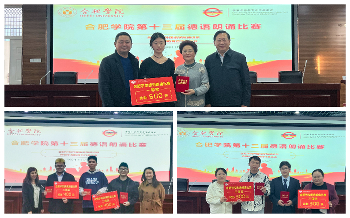 比赛中,选手们以饱满的热情诵读内容,或深情诉说,或激昂赞颂……每位参赛者都用自己独特的方式展现德语的魅力,选手们精彩的表现赢得了观众的阵阵掌声。经过激烈角逐,刘东凭借优异表现获得一等奖,李杰铭、陈皓然、赵俊哲获得二等奖,郑坤、武文骥获三等奖。赛后,嘉宾为获奖学生颁奖并合影留念。