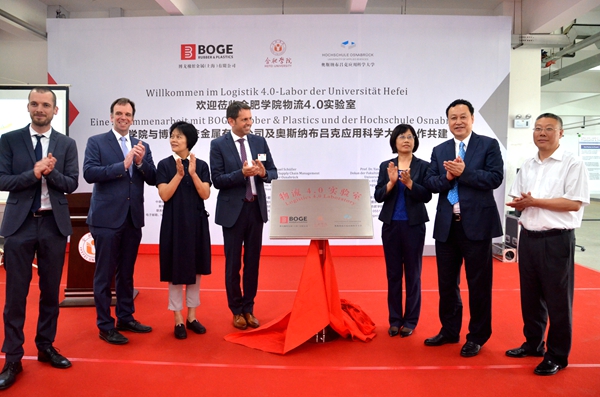 Bei der Eröffnungszeremonie blickte Herr Prof. Dr. Cai Jingmin auf die Kooperationen zwischen der Hochschule Osnabrück und der Universität Hefei in den Bereichen Austausch von Studierenden und Lehrkräften, wissenschaftlicher Zusammenarbeit, Ausbildung der Lehrkräfte und Zusammenarbeit in den internationalen Konferenzen zurück. Der von der Hochschule Osnabrück und der Universität Hefei gemeinsam gegründete Studiengang „LOGinChina“, war das erste mit einer ausländischen Hochschule kooperierende Studienprogramm der Provinz Anhui. Mit der Gründung des LOGinCHINA Logistik 4.0-Labors wird die Zusammenarbeit zwischen Hochschulen und Unternehmen vertieft und gleichzeitig den Studierenden Praxiserfahrungen geboten.