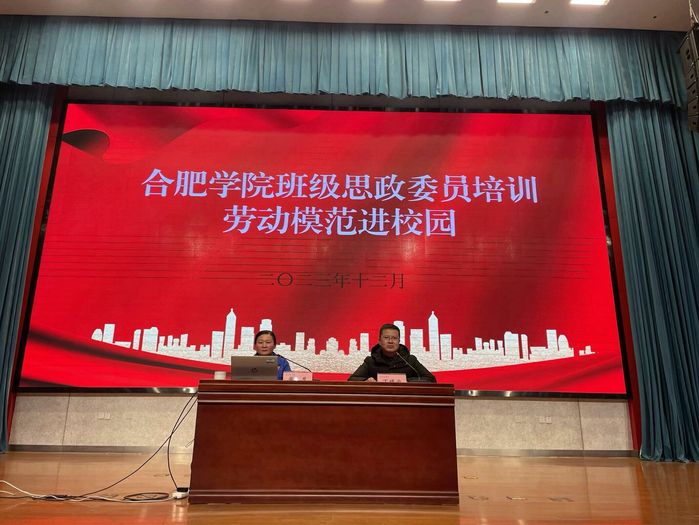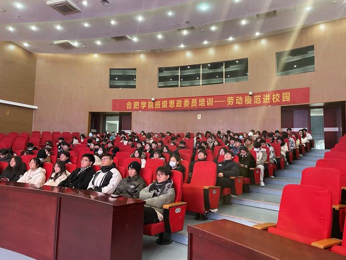 为进一步加强思想政治教育工作,引导青年大学生树立正确的劳动观,12月19日下午,我校在图书馆报告厅A厅举办“劳动模范进校园”班级思政委员专题培训,邀请全国劳动模范、安徽叉车集团有限责任公司数控车工首席技师、群众工作部副部长董慧来校作主题报告。报告会由党委学生工作部部长丁增云主持,全校班级思政委员参加。