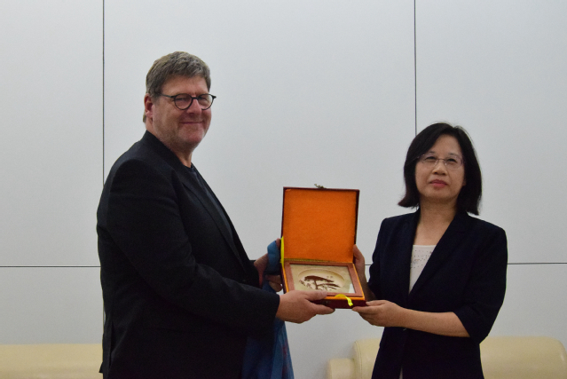 Die Präsidentin der Hefei-Universität Frau Wu Chunmei empfing die Gäste im VIP-Besprechungsraum in der Bibliothek. Sie wurden von der stellvertretenden Präsidentin Frau Chen Xiu und dem jeweiligen Leiter der Abteilung für internationale Austauschkooperation und vom Volkswagen-Institut. Beide Seiten konnten sich über die Stärkung der bilateralen Zusammenarbeit sowie den Aufbau von Volkswagen-Institut verständigen.