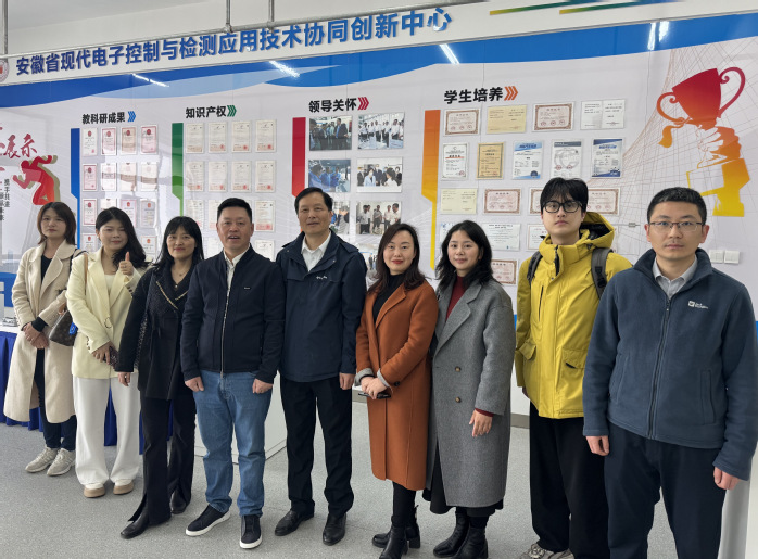 为加强产学研合作,培养复合型智能制造人才,3月13日上午,安徽环瑞电热器材有限公司董事长计成志到我校先进制造工程学院安徽省现代电子控制与检测应用技术协同创新中心调研。