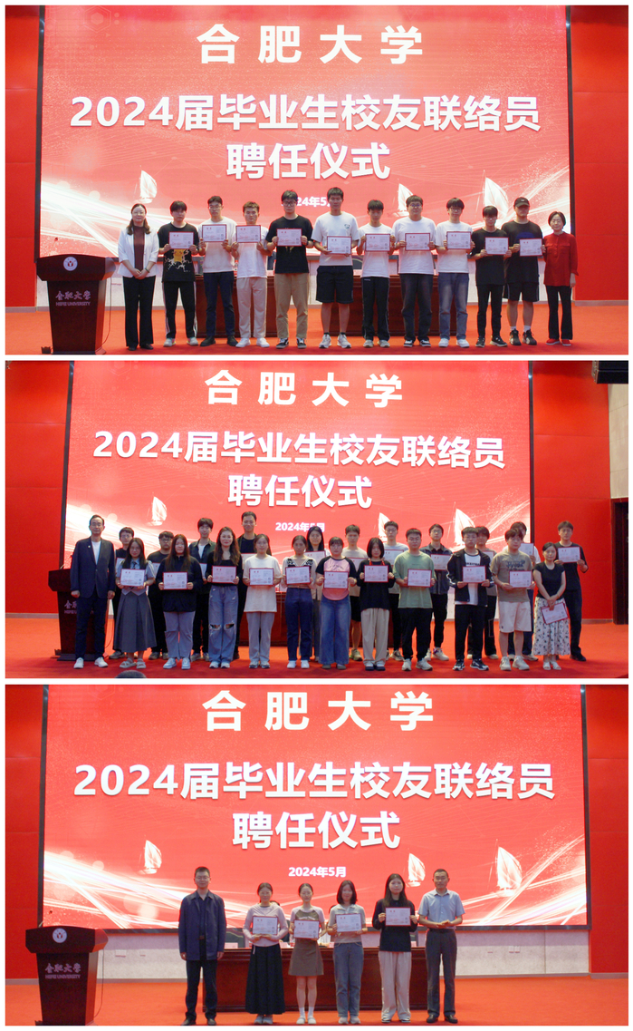 5月31日下午,2024届毕业生校友联络员聘任仪式在图书馆学术报告厅A厅举行。校友办、学生处、各二级学院党委书记和副书记、2024届毕业生校友联络员参加仪式。