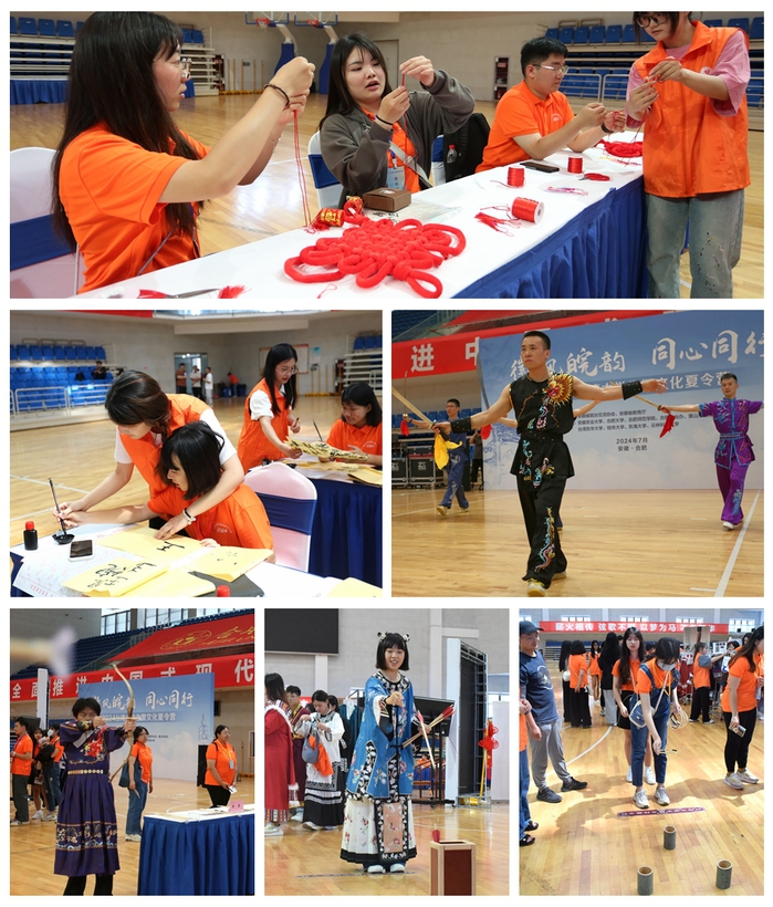 为促进海峡两岸友好交流发展,7月5日下午,我校在体育馆开展2024皖台大学生徽文化夏令营——传统文化体验营活动。校党委委员、副校长白义香出席活动并致辞,皖台交流协会领导、学校相关部门主要负责人、台湾各高校、安徽农业大学、合肥师范学院以及我校师生参加活动。