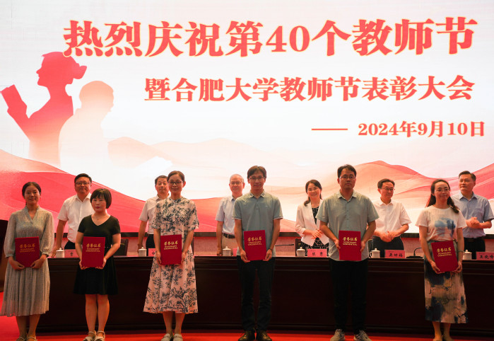 校领导、党委委员分别为安徽省教育工作先进集体、安徽省优秀教师、安徽省优秀教育工作者、2023年度江淮英才培养计划杰出项目创新人才、第四届全国教师教学创新大赛安徽赛区获奖教师、全省高校思政课现场教学展示获奖教师、2023年度省级教学名师、2023年度省级教坛新秀等获奖教师颁奖。