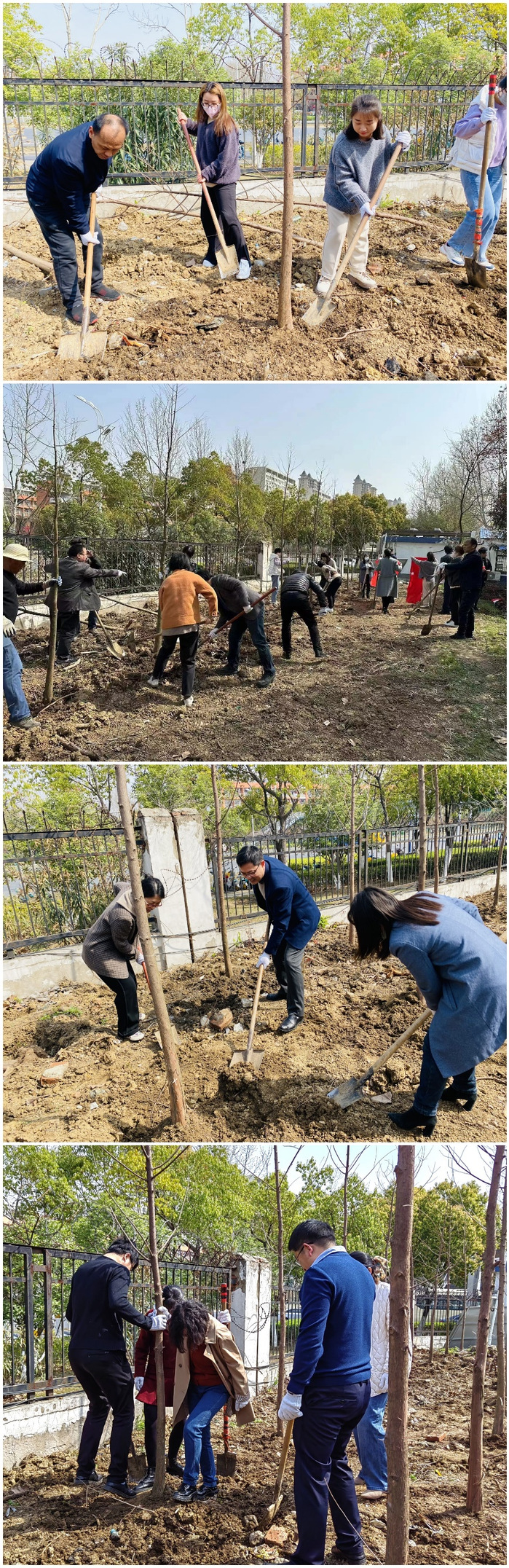 植树现场,全体党员同志热情高涨、干劲十足,大家或两人一组,或三人一队,有的挥锹挖土,有的扶苗培土,有的夯实土层,各个环节衔接有序,充分展示了党员干部朝气蓬勃的精神风貌和团结协作的合作精神。经过一个小时热火朝天的劳动,一长排新树苗迎风挺拔,为学校增添了一抹靓丽的新绿。