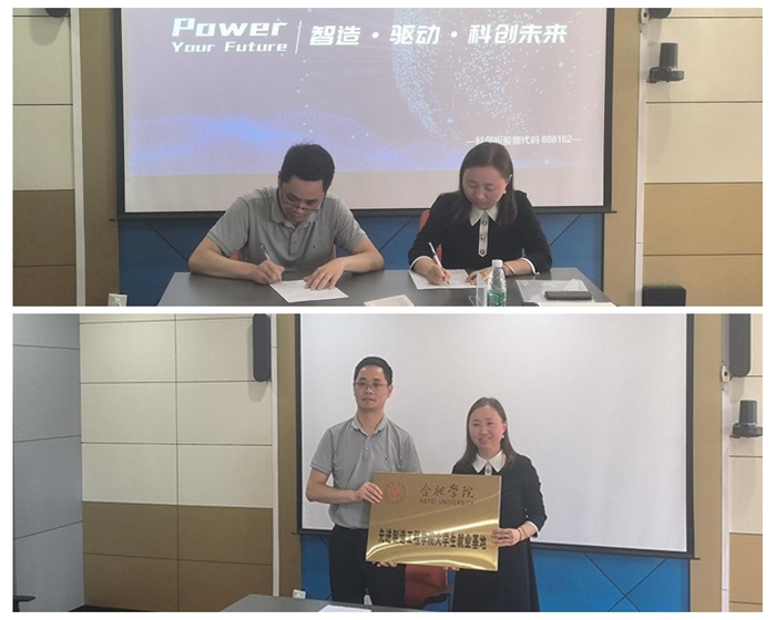 双方就建立长期合作关系、共同培养人才等方面达成一致意见,并签署就业合作协议,先进制造工程学院授予企业方“合肥学院先进制造工程学院大学生就业基地”牌匾。