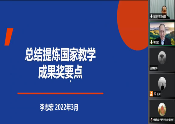 余国江教授从实际出发,着眼于申报书“头体尾”各部分的细节及关键点的把握,详细阐述了教学成果凝练与申报书撰写,着重强调了申报书的撰写要求和技巧。余国江教授认为,申报书的撰写要突出“新”“特”“亮”“准”“实”“细”“小”“创”和“广”等特点,并从成果名称的句式结构、成果简介、主要解决的教学问题、解决问题的方法、成果创新点及推广应用效果等六个方面具体阐述了撰写方法和技巧,并特别强调了教学成果推广的重要性,并给出了具有实践意义的撰写建议。 本次会议线上总观看人数9317人,省内24所安徽省应用型本科联盟高校及安徽大学、安徽医科大学、安徽工程大学、安徽财经大学等参加会议。同时,北京市、上海市、天津市、河北省、广西壮族自治区、浙江省等全国多个省、市40余所高校也参加了会议并给予高度评价与认同。 国家教学成果是高校深化教育教学改革集中体现,是学校人才培养工程和教育教学改革实践探索的全面总结,是衡量学校教育教学水平和教学质量的重要参考依据。联盟高校需要不断转变教育思想观念、完善人才培养质量保障体系,全面推进人才培养模式改革与创新,并不断总结和巩固成果实效,加强推介宣传应用,回应高等教育高质量发展的社会期待。