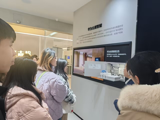 随后,在华为工作人员的带领下,大家共同参观了华为全屋智能体验店和智选车交付中心。在全屋智能体验店中,同学们亲身体验了华为在智能家居领域的最新成果,感受了人工智能和大数据技术如何改变人们的日常生活。而在智选车交付中心,大家则详细了解了华为在智能汽车领域的战略布局和技术创新,对未来汽车行业的发展趋势有了更加清晰的认识。