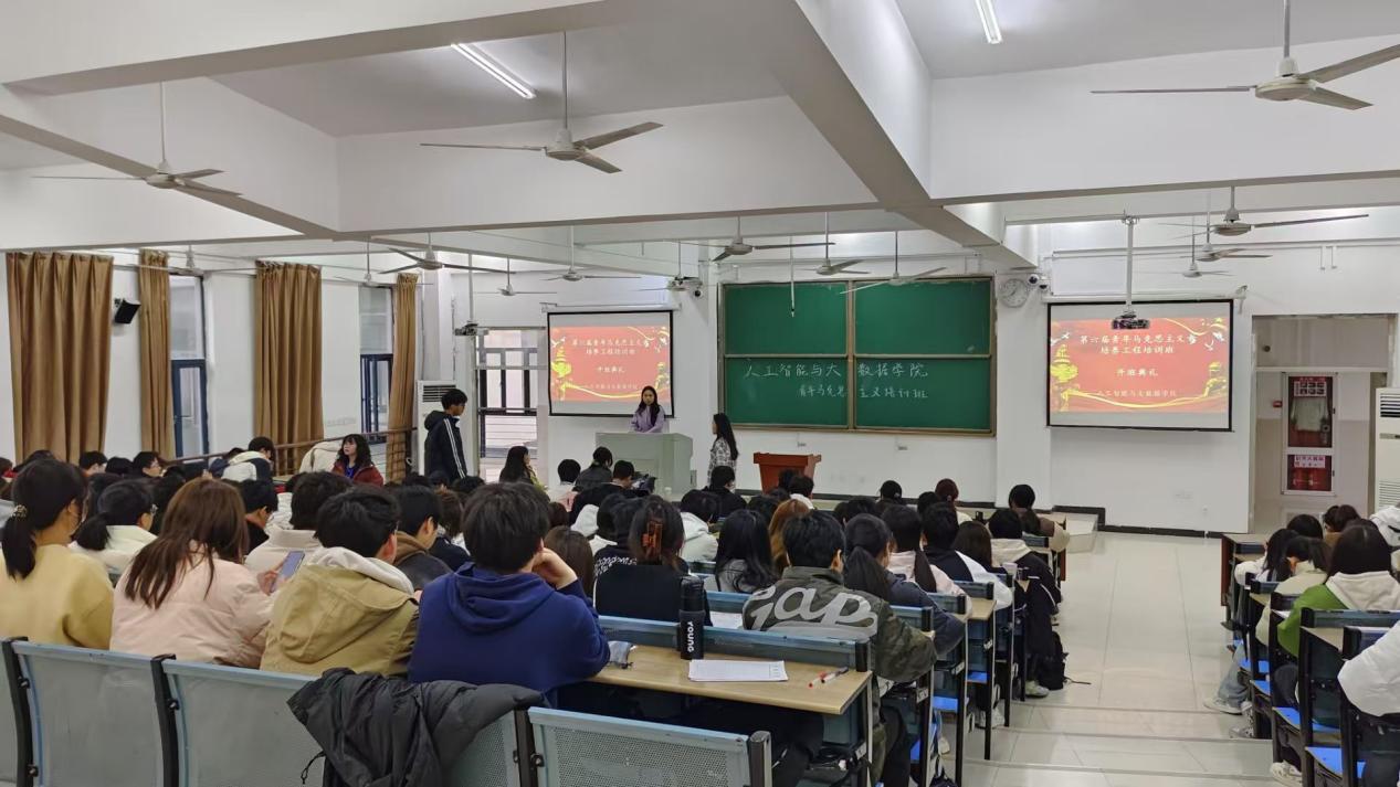 为深入提升学员理论素养和政治水平,人工智能与大数据学院于3月14日12点40分于36栋2阶梯教室开展了2025年度青马班开班仪式暨第一次授课。本次开班仪式由团委书记章云冉老师主持,党委副书记姚蓓蓓老师担任主讲,全体青马班成员参加。