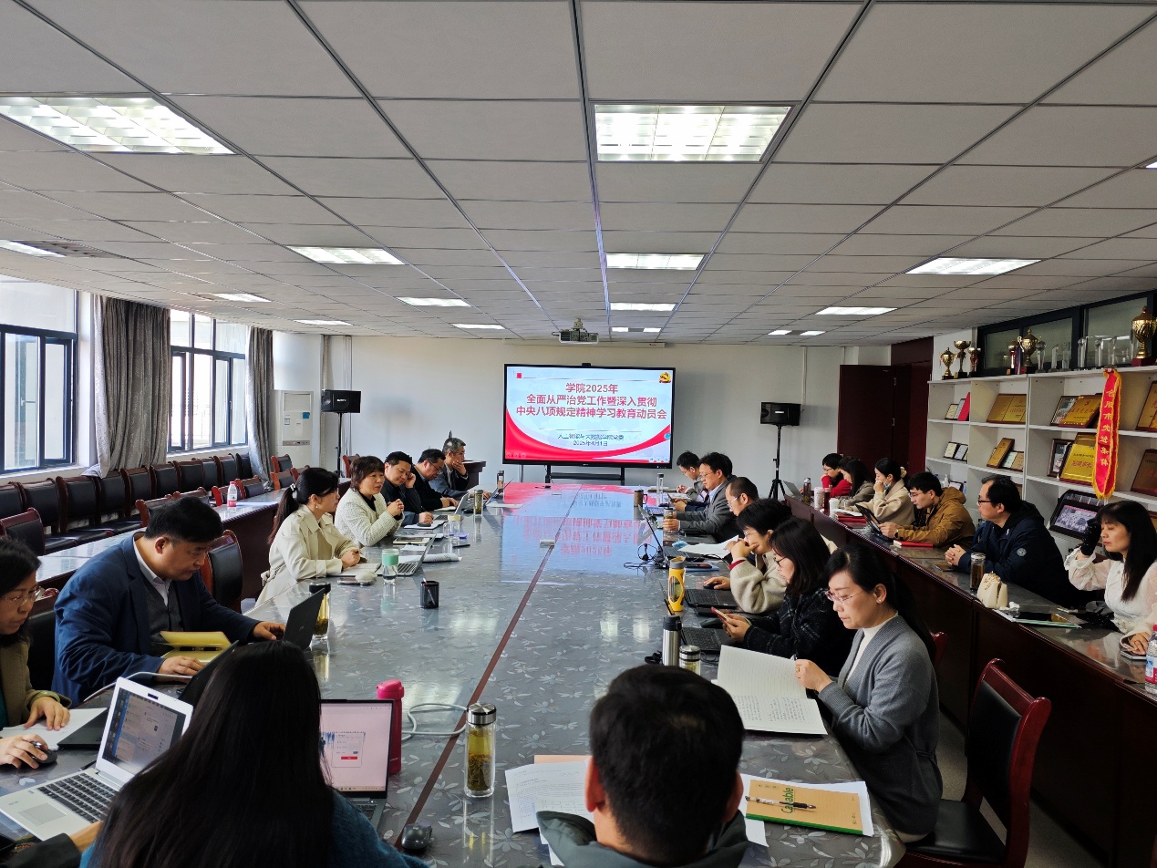 会议深入学习了习近平总书记关于加强党的作风建设论述和关于深入贯彻中央八项规定精神学习教育的重要讲话和重要指示精神;传达学习了习近平总书记在二十届中央纪委四次全会上的重要讲话精神、省教育系统全面从严治党工作视频会议精神以及学校全面从严治党工作等会议精神。接着一是对学院2025年全面从严治党的重点工作安排进行布置,二是对学院深入贯彻中央八项规定精神学习教育进行动员和部署,并对学习教育方案进行了解读。