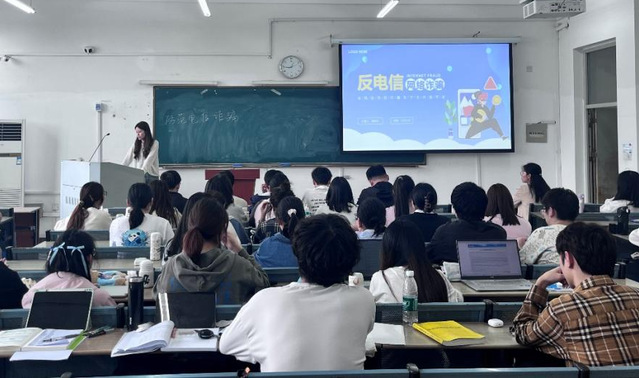 辅导员邓欣辰系统梳理了近期典型电信诈骗案例,通过刷单返利”“虚假征信等八大诈骗类型图解,深入浅出地讲解了识别要点和防范策略。她特别强调:要牢记'三不'原则——不轻信、不转账、不泄露,切实守护好个人信息与财产安全。