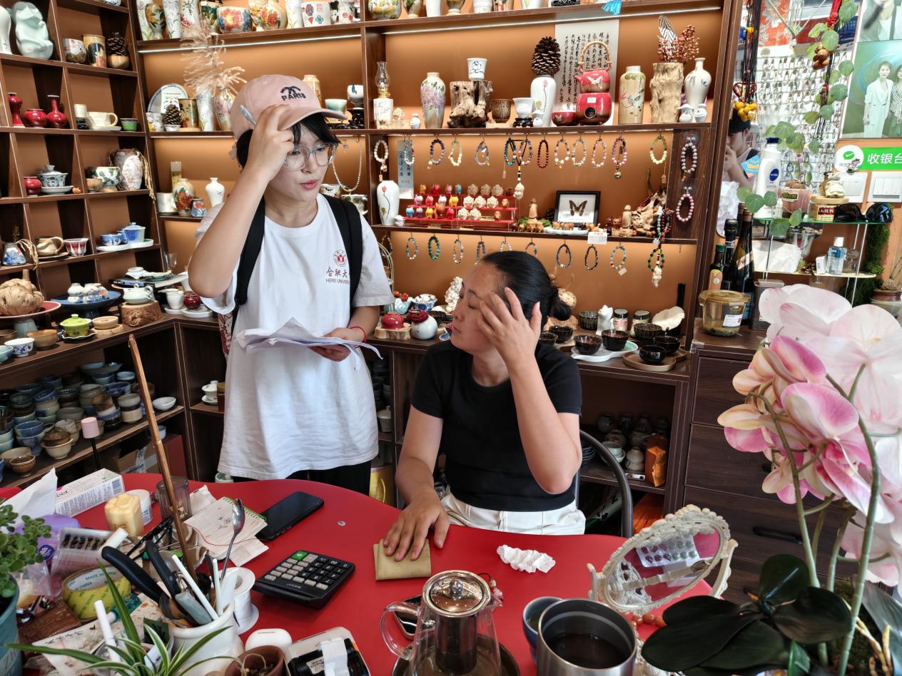 在传统手工业数字化转型调研,队员们走进宣纸、木雕、竹编手工作坊,被匠人们精湛的技艺深深震撼。老艺人手中翻飞的刻刀、竹篾,勾勒出栩栩如生的图案,每一件作品都凝聚着几十年的心血。学生们与手工艺人围坐交流,耐心倾听技艺承中的坚守与经营发展遭遇的困境——精美手工艺品特别是个人作坊因宣传推广渠道有限、销售范围狭窄,陷入“养在深闺人未识”的尴尬处境。针对这一痛点,团队成员结合短视频平台的非遗推广案例,提出建立手工艺人数字档案、拍摄视频展示非遗文化和搭建线上定制平台的三步走方案。