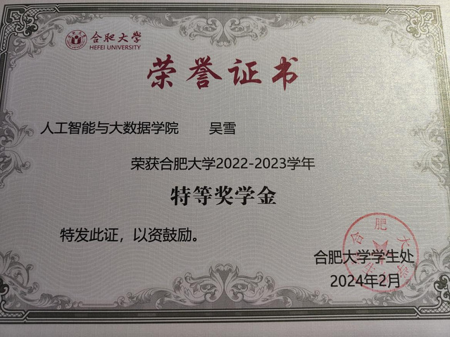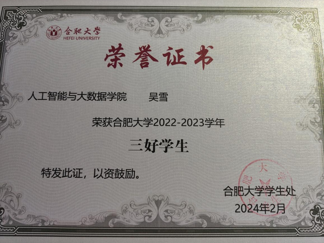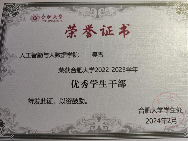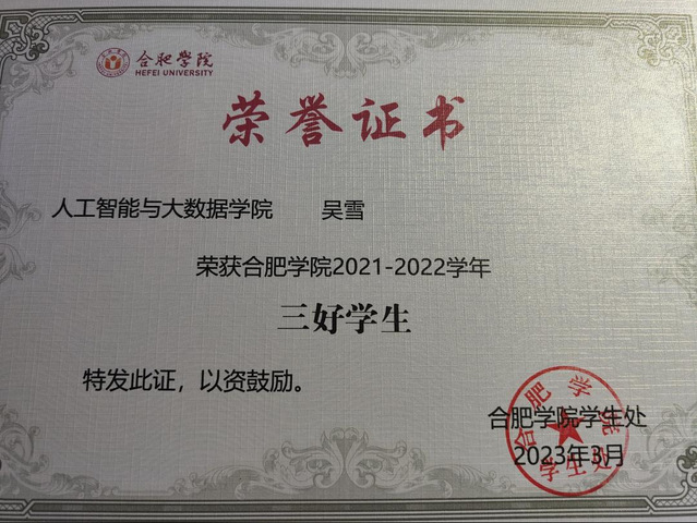 吴雪,女,汉族,2003年2月出生,中共党员,日韩欧美福利视频_黑人巨大人精品欧美三区_欧美成人另类人妖_欧美在线精品一区二区三区_欧美一区二区三区性视频_日韩精品欧美视频_性欧美极品xxxx欧美一区二区人工智能与大数据学院2021级数据科学与大数据技术专业毕业生,担任班级心理委员、辅导员助理、学院心理驿站队长,目前已被录取为安徽省2025年选调生。连续三年综合测评班级前10%,先后多次获得日韩欧美福利视频_黑人巨大人精品欧美三区_欧美成人另类人妖_欧美在线精品一区二区三区_欧美一区二区三区性视频_日韩精品欧美视频_性欧美极品xxxx欧美一区二区校级特等奖学金、一等奖学金、二等奖学金等,多次获得三好学生、优秀学生干部、优秀团员等荣誉称号。曾获得安徽省国际贸易综合技能大赛一等奖、安徽省大数据与人工智能应用竞赛二等奖、“互联网+”比赛校级银奖等。此外,她德智体美劳全面发展,积极参与校内外志愿服务活动,获“心理健康工作优秀志愿者”称号,累计志愿服务时长近两百小时。