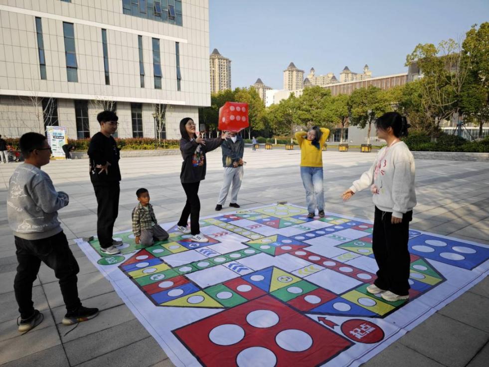 在学院的大力支持下,此次活动吸引了众多学生的热情参与。现场布置了超大的飞行棋地毯,参与者们在棋盘上争夺第一,体验冒险、策略与竞技的乐趣,既锻炼了参与者的个人应变能力,也增强了他们的心理韧性。