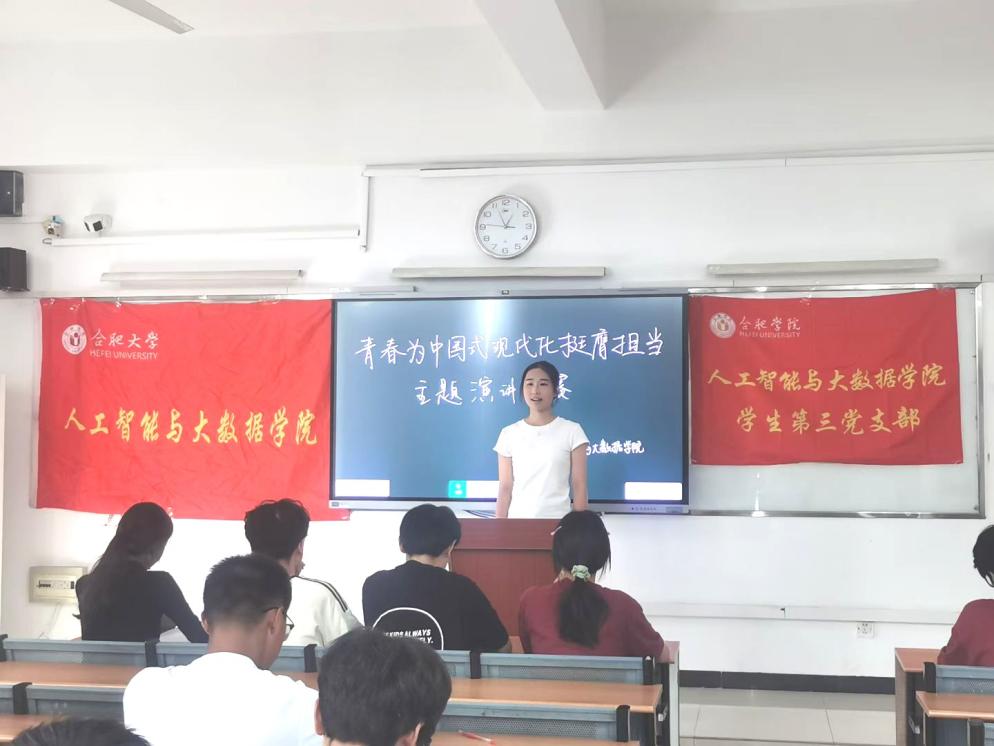 为选拔优秀选手参加第八届“中海地产杯”安徽省大学生主题演讲比赛校赛,人工智能与大数据学院团委于2025年9月18日中午在36栋202教室举办院赛选拔。本次比赛由团委负责老师张银双主持,学院团委各部门负责人担任评委,我院众多同学积极报名参赛。